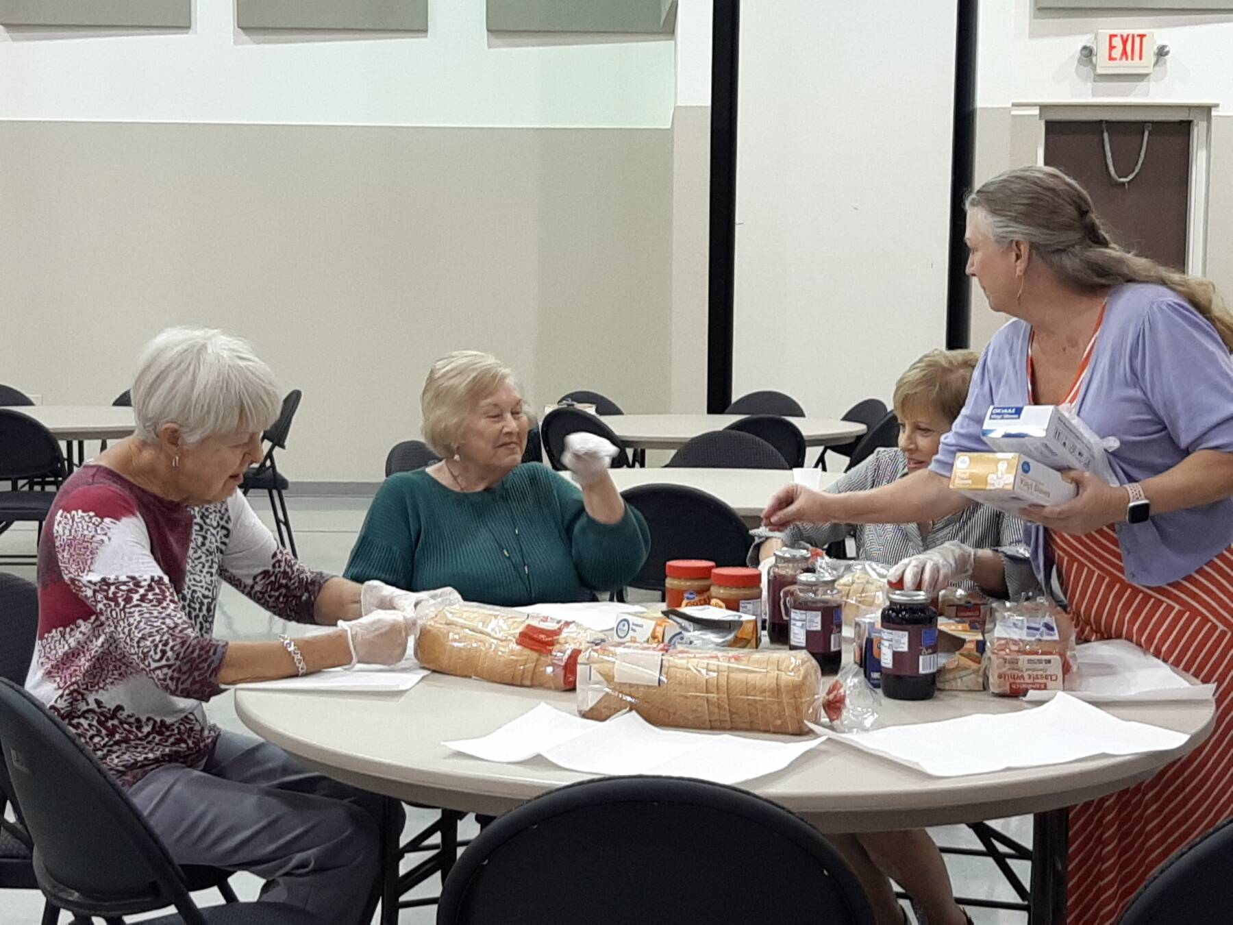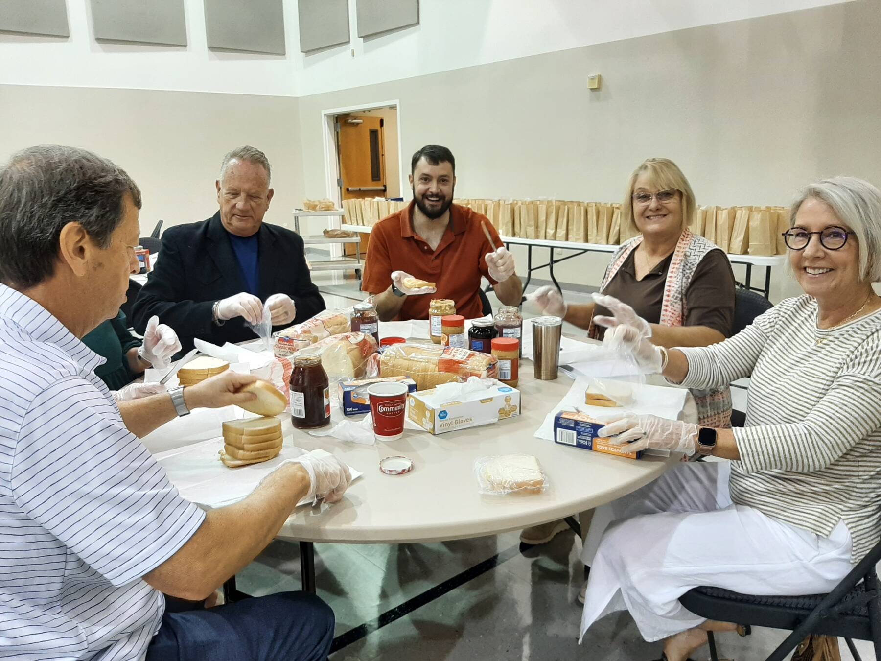 Once a month we assemble 100 sack lunches for Union Gospel Mission in Fort Worth.