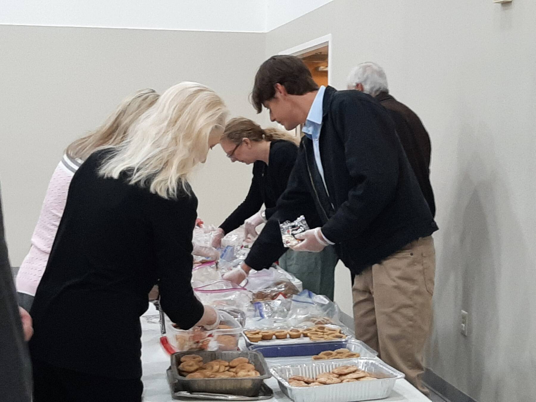 Once a month we assemble 100 sack lunches for Union Gospel Mission in Fort Worth.